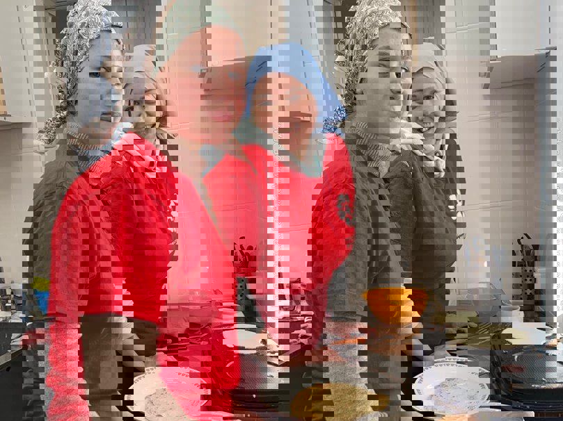праздником Рождества Христова и Пасхи, выпекании блинчиков для бездомных (на фото), на сортировке вещей,
