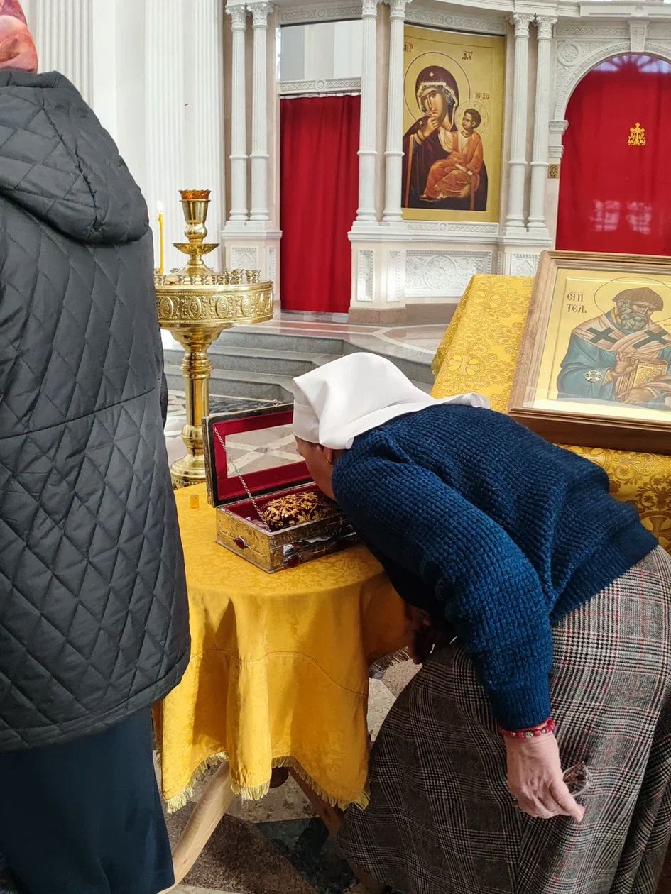 Туфелька Спиридона Тримифунтского находится в Успенском соборе Екатеринбурга. Еженедельно в субботу совершается молебен в 15:30.