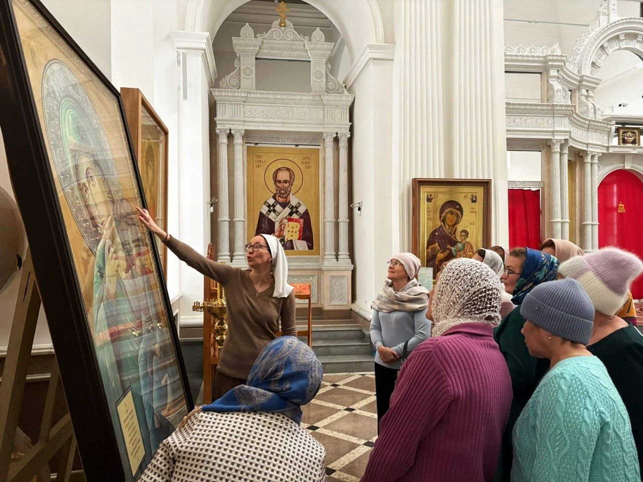 Затем для группы провели экскурсию по восстанавливаемому Успенскому собору. Помощник настоятеля Светлана Кислова рассказала о жизни прихода, об истории каждой иконы восстанавливаемого собора, про текущий этап восстановительных работ.
