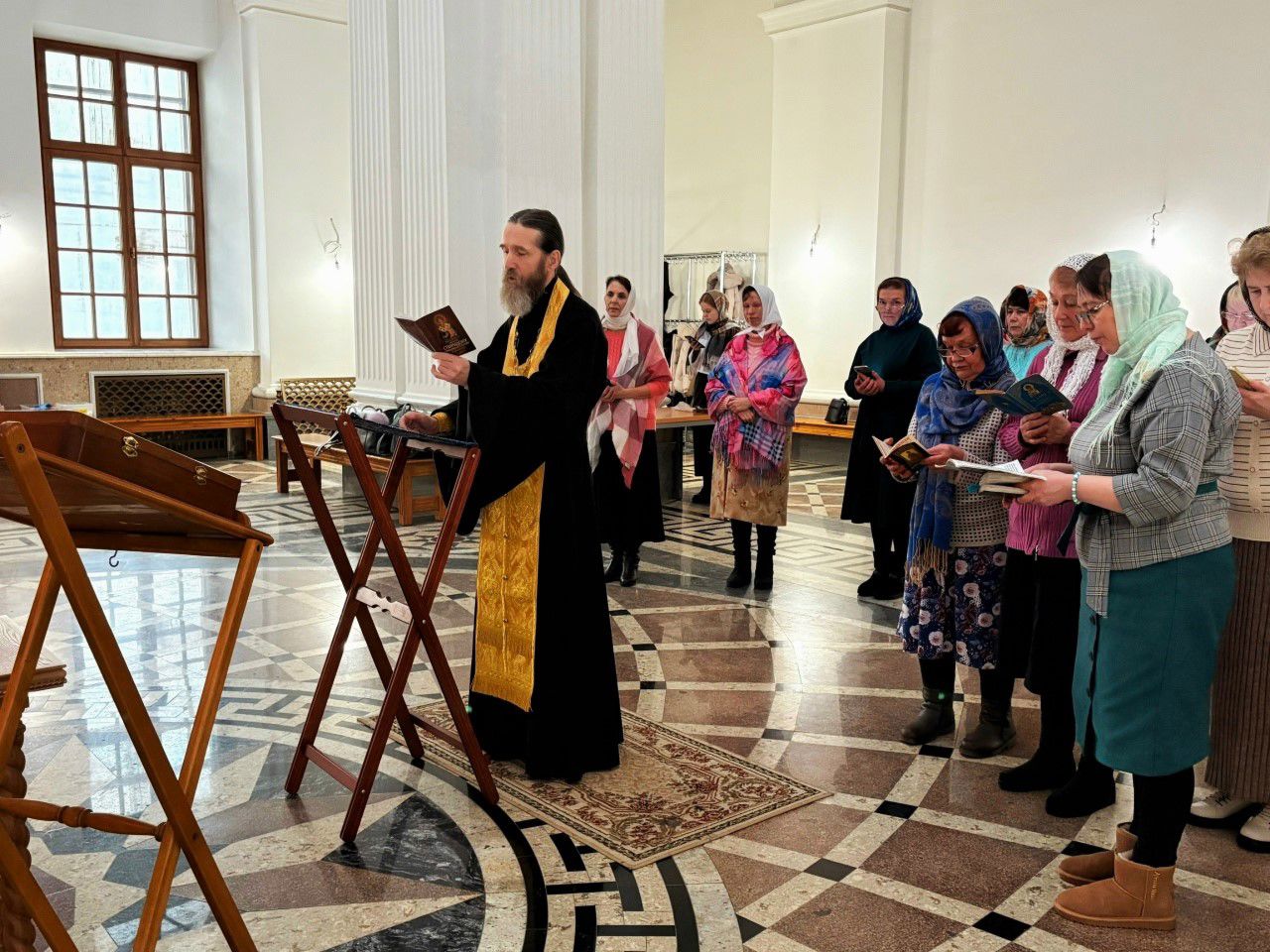 Священник храма преподобного Серафима Саровского Андрей Федореев отслужил молебен с акафистом святителю Спиридону, паломники коленопреклоненно помолились святому, благоговейно приложились к ковчежцу со святыней.