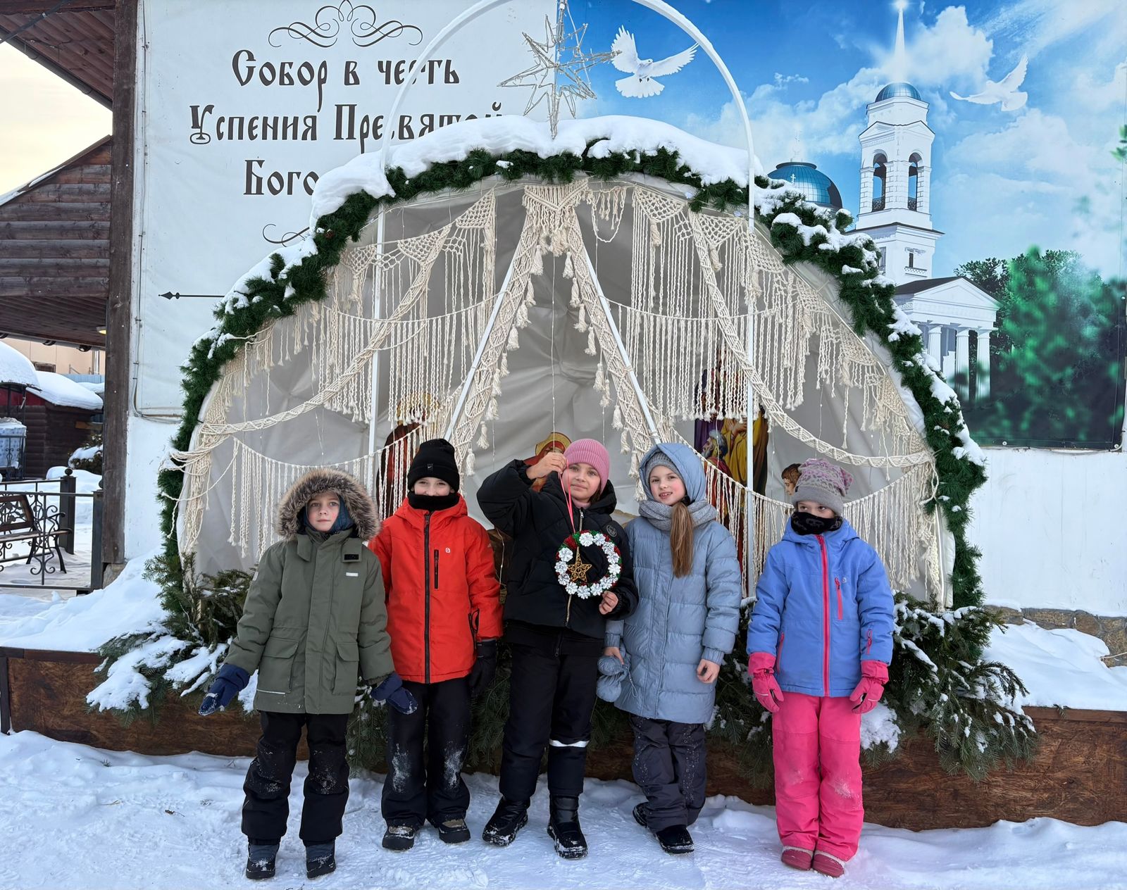 Ребята осмотрели территорию Собора, украшенную к Рождеству Христову, посмотрели овечек и погуляли на детской площадке.