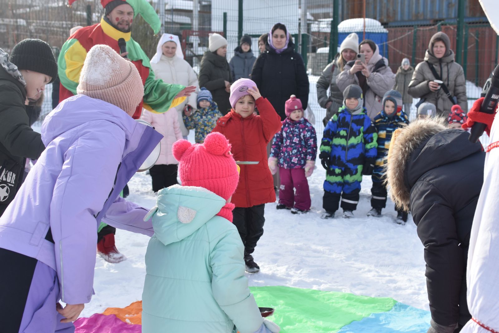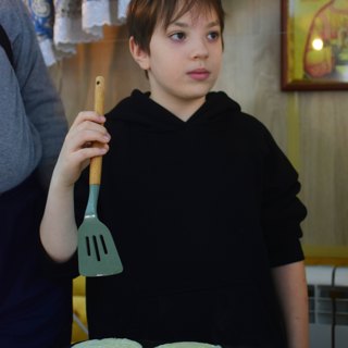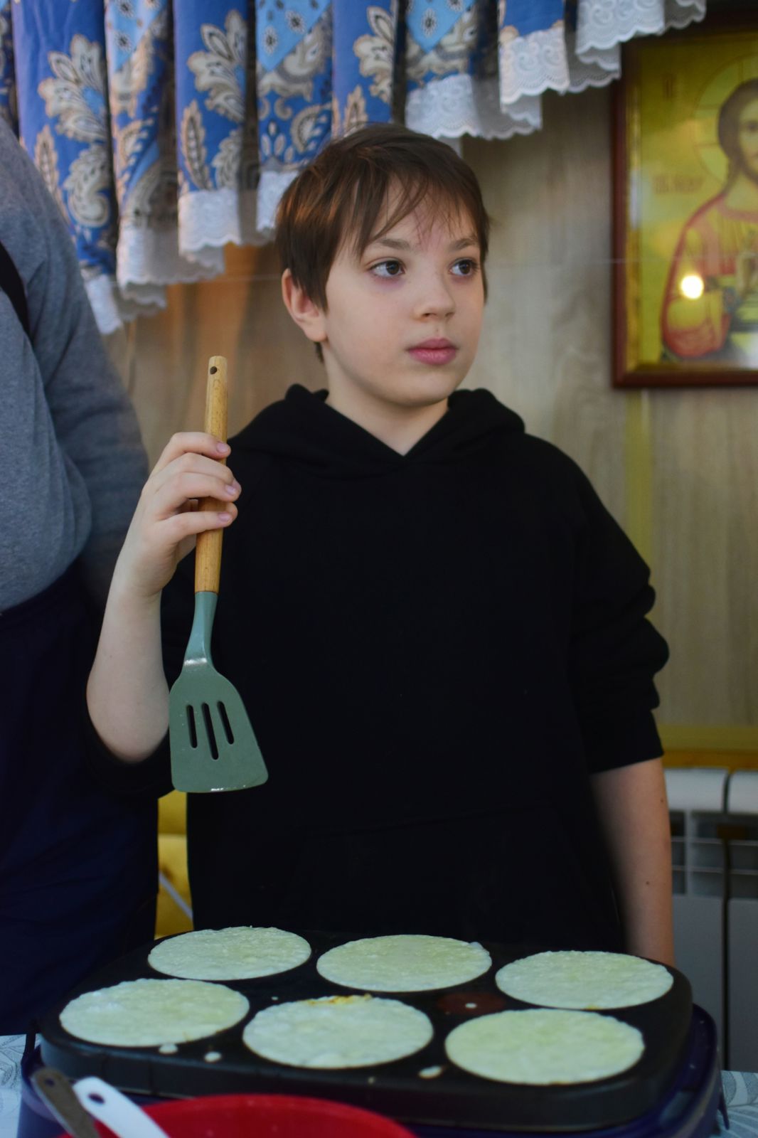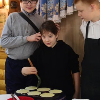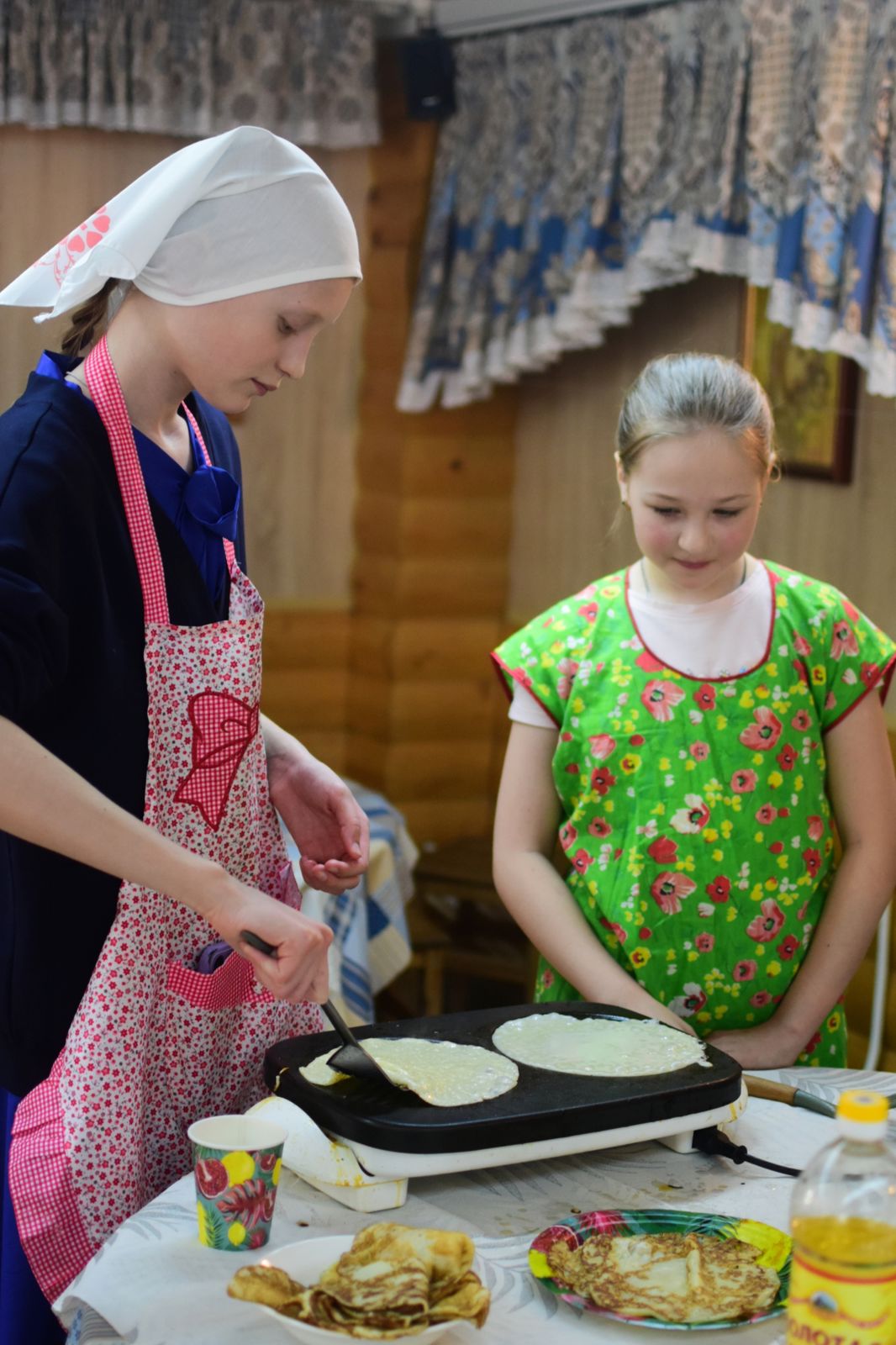 Ребята из воскресной школы с радостью готовили блины, а на детской площадке проходили игры для детей, организованные супругами Андреем и Натальей Галактионовыми.