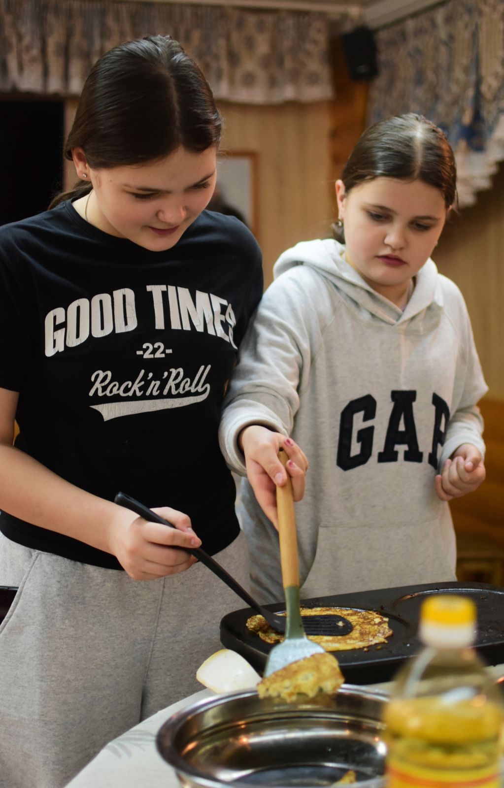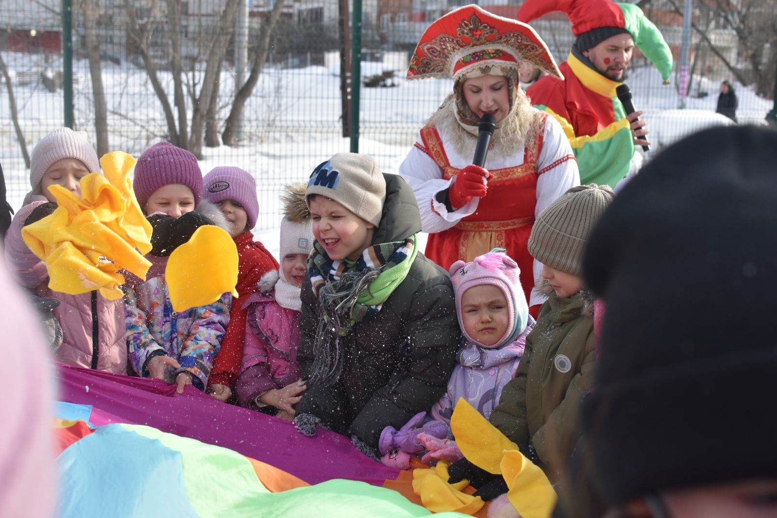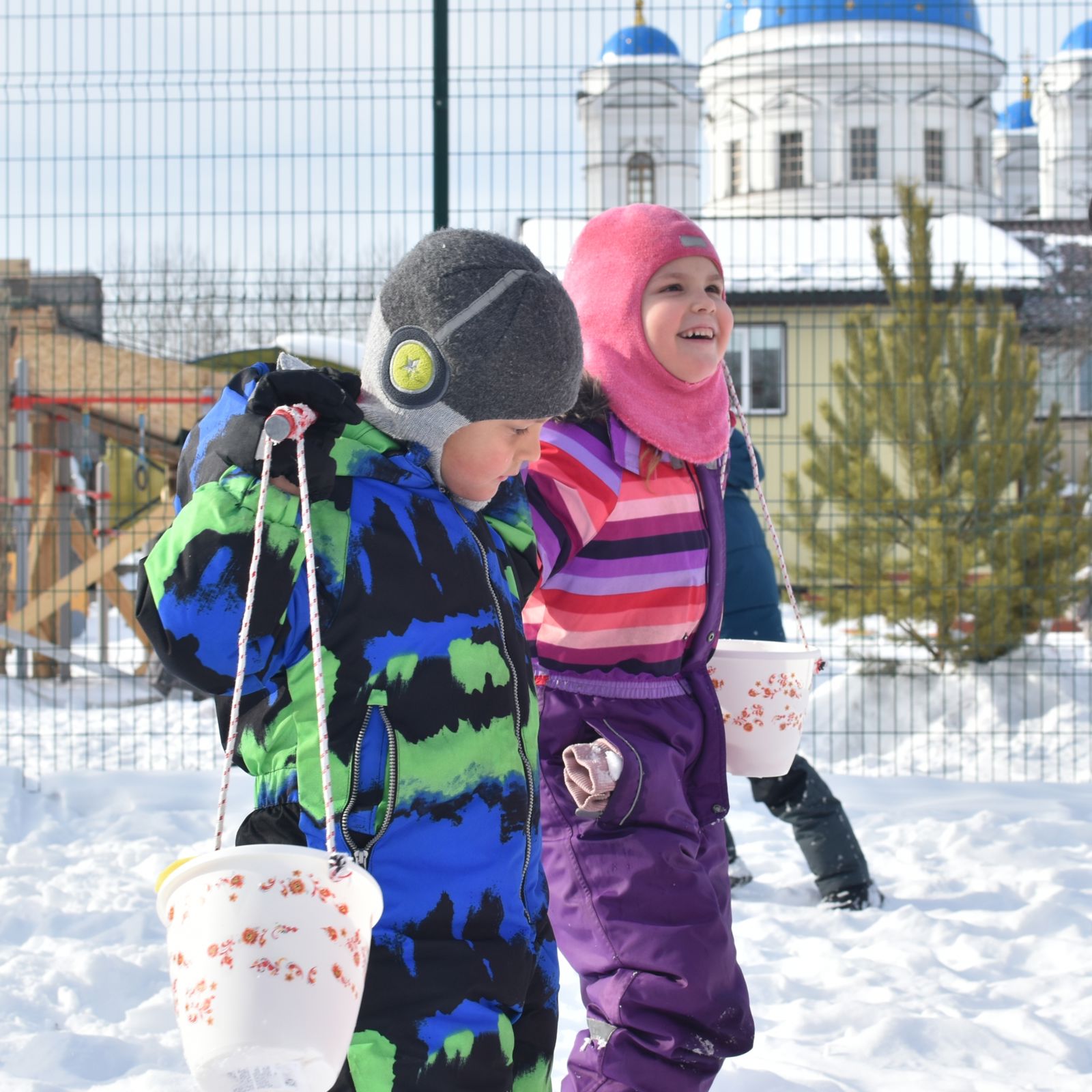 Ребята из воскресной школы с радостью готовили блины, а на детской площадке проходили игры для детей, организованные супругами Андреем и Натальей Галактионовыми.