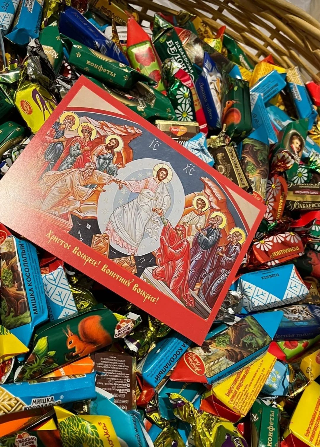 Благодарим прихожан за сбор конфет, которые мы дарили на ночной и поздней литургии — это тоже стало доброй традицией нашего храма! В этом году было собрано более 3000 конфет.