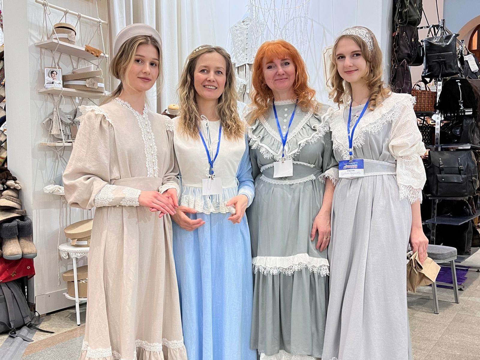 В выставочном центре "Гостиный двор" Успенская артель представила платья из коллекции, посвящённой Царской семье, и конкурсную работу дизайнера Венеры Насоновой под названием "Россиюшка".